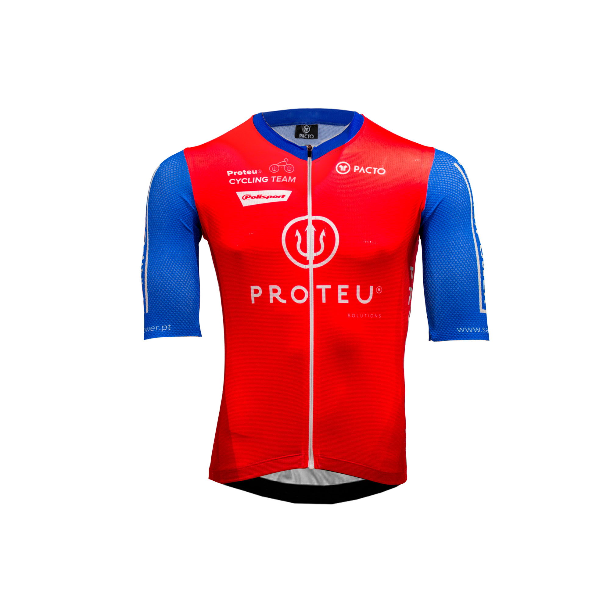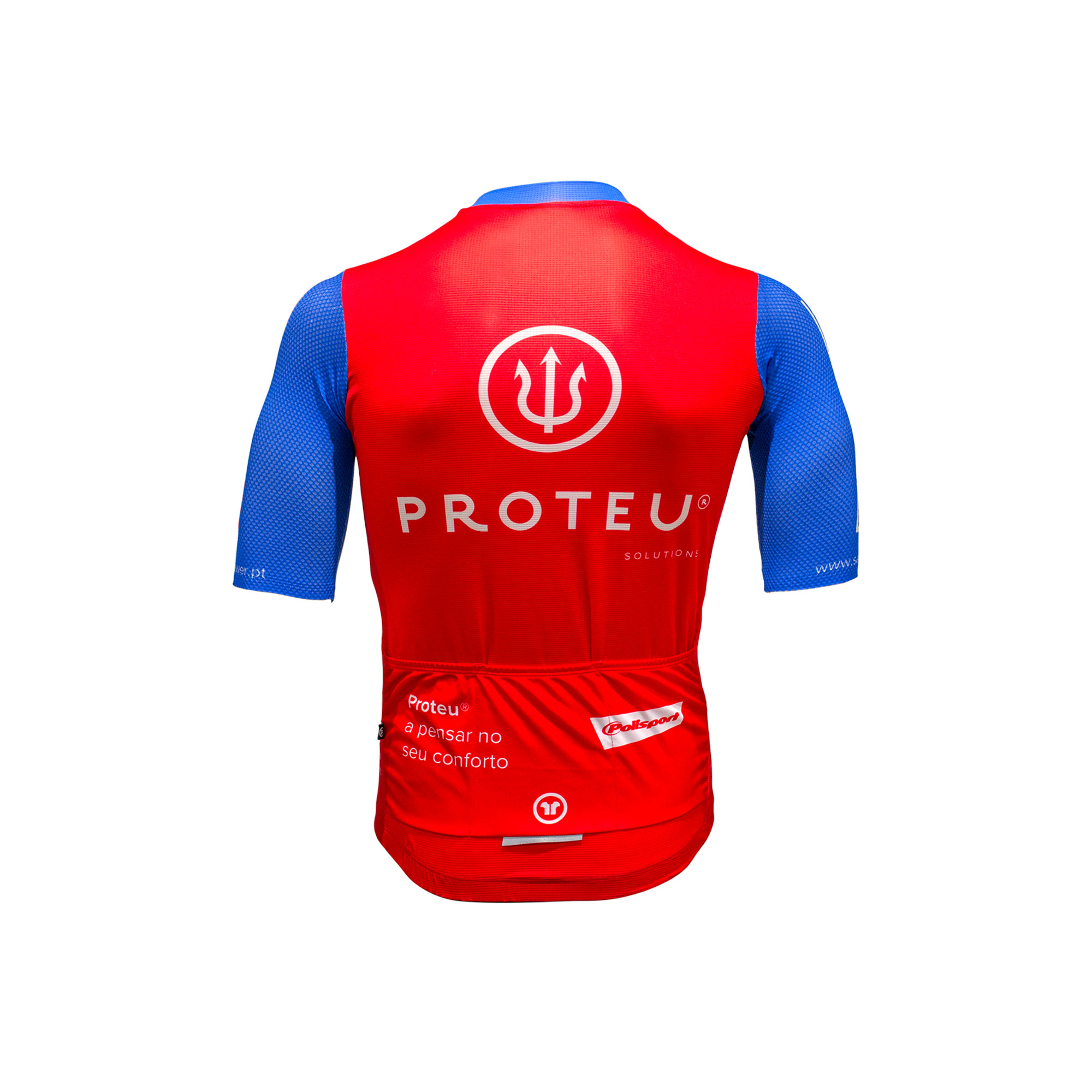 Tecido elástico com costura exterior, as mangas da camisola team pro são em rede. Na parte inferior da camisola contem uma banda em silicone para que se ajuste melhor ao corpo e garantindo um maior conforto.